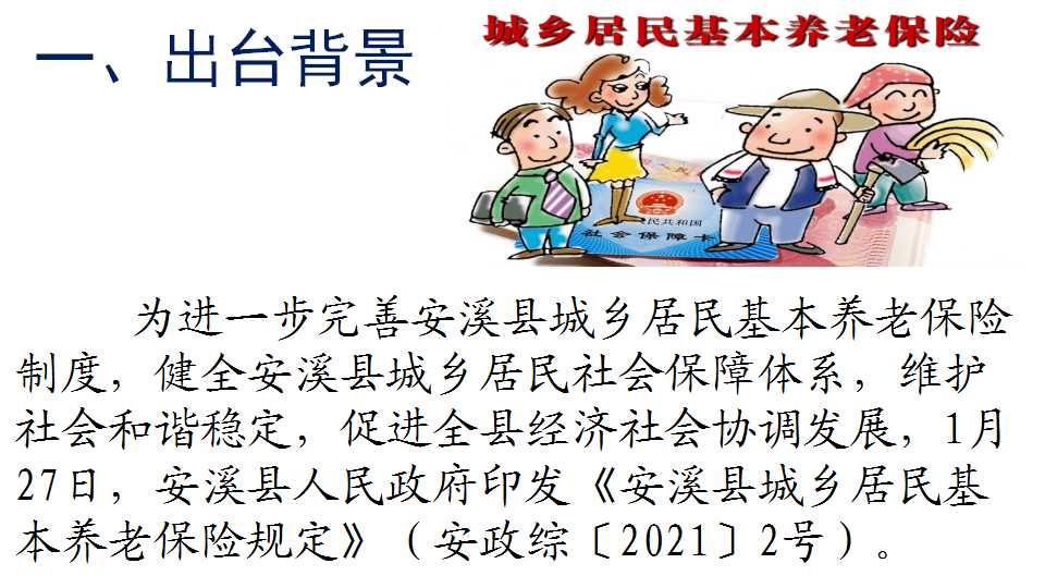 - 《安溪縣城鄉(xiāng)居民基本養(yǎng)老保險(xiǎn)規(guī)定》政策解讀